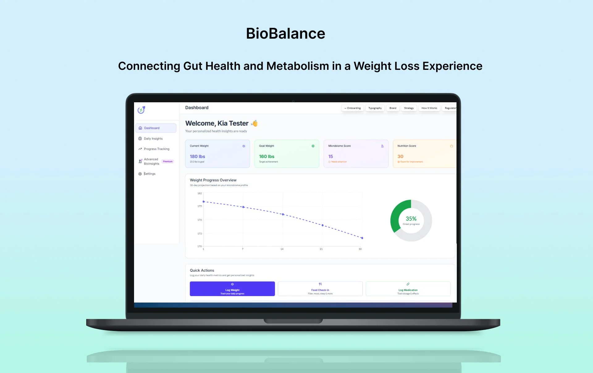 BioBalance is a personalized health experience that translates gut microbiome science into actionable nutrition and metabolic insights through intuitive tracking and data-driven recommendations