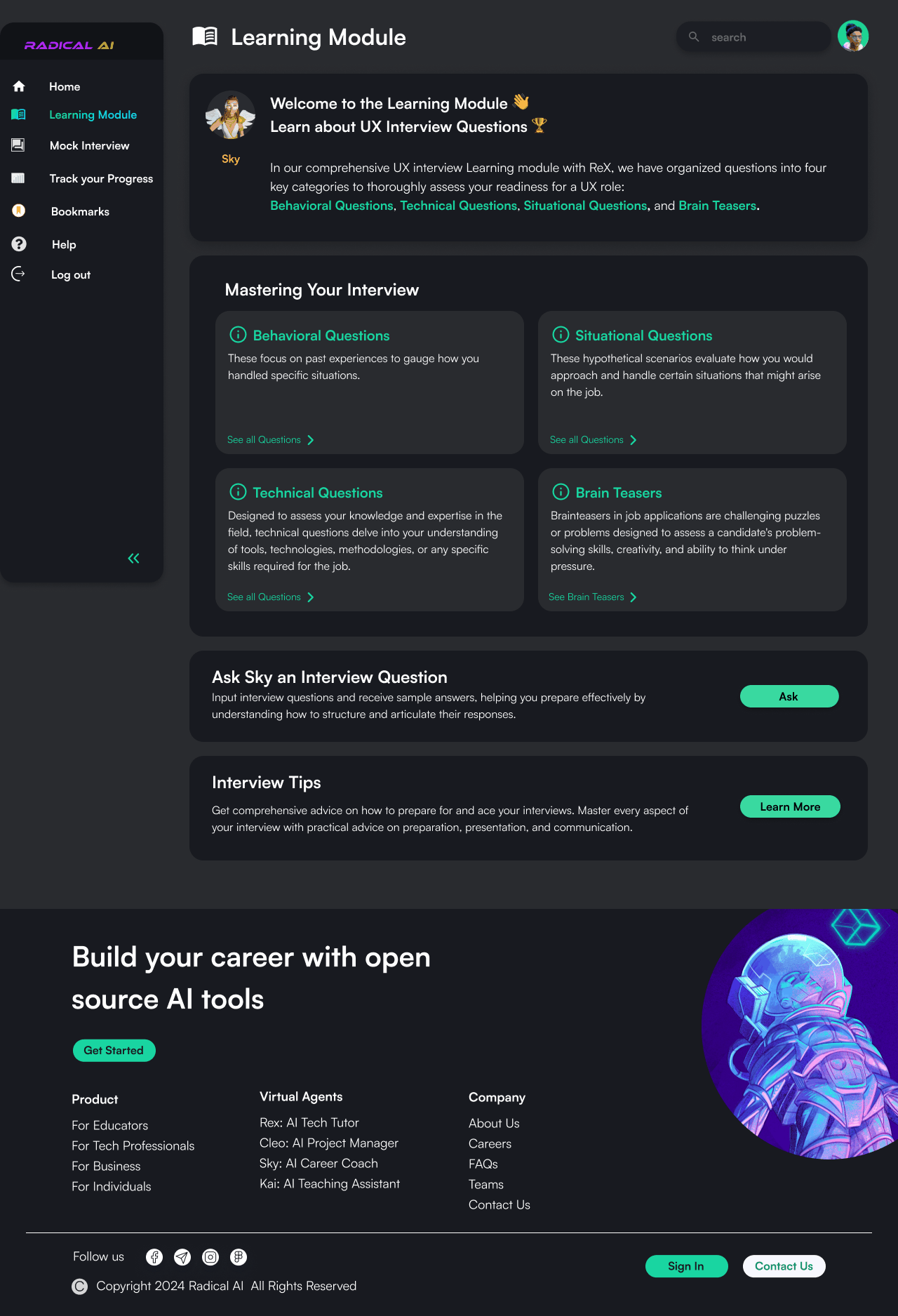 Designed “Sky”, an AI Career Coach platform focused on personalized tech interview preparation.